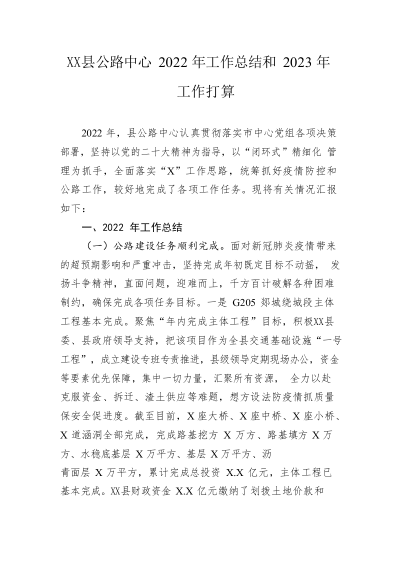 / 县公路中心2022年工作总结和2023年工作打算