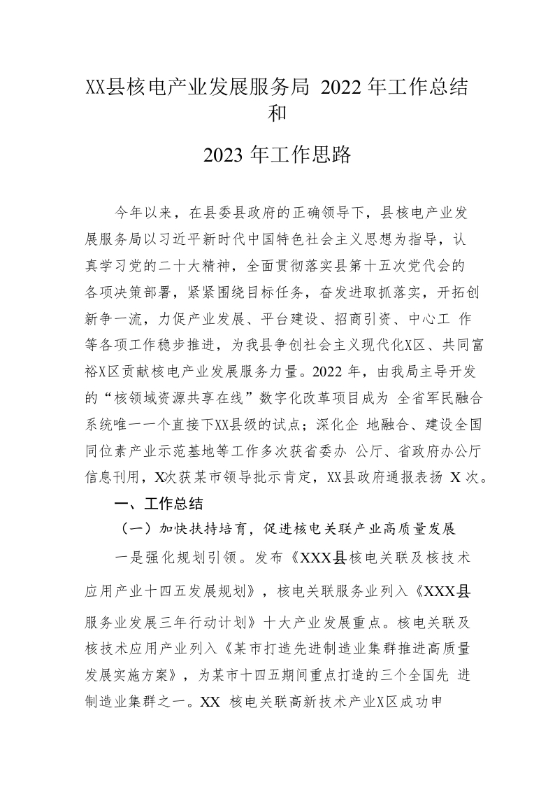 / 县核电产业发展服务局2022年工作总结和2023年工作思路