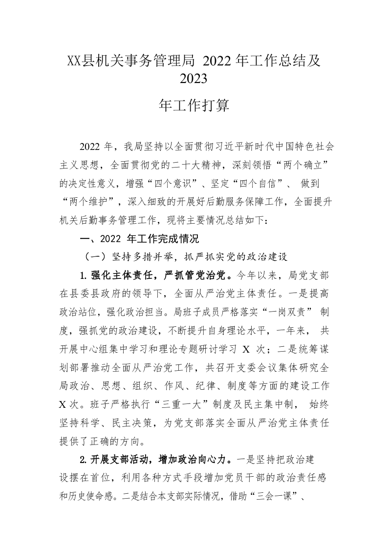 / 县机关事务管理局2022年工作总结及2023年工作打算