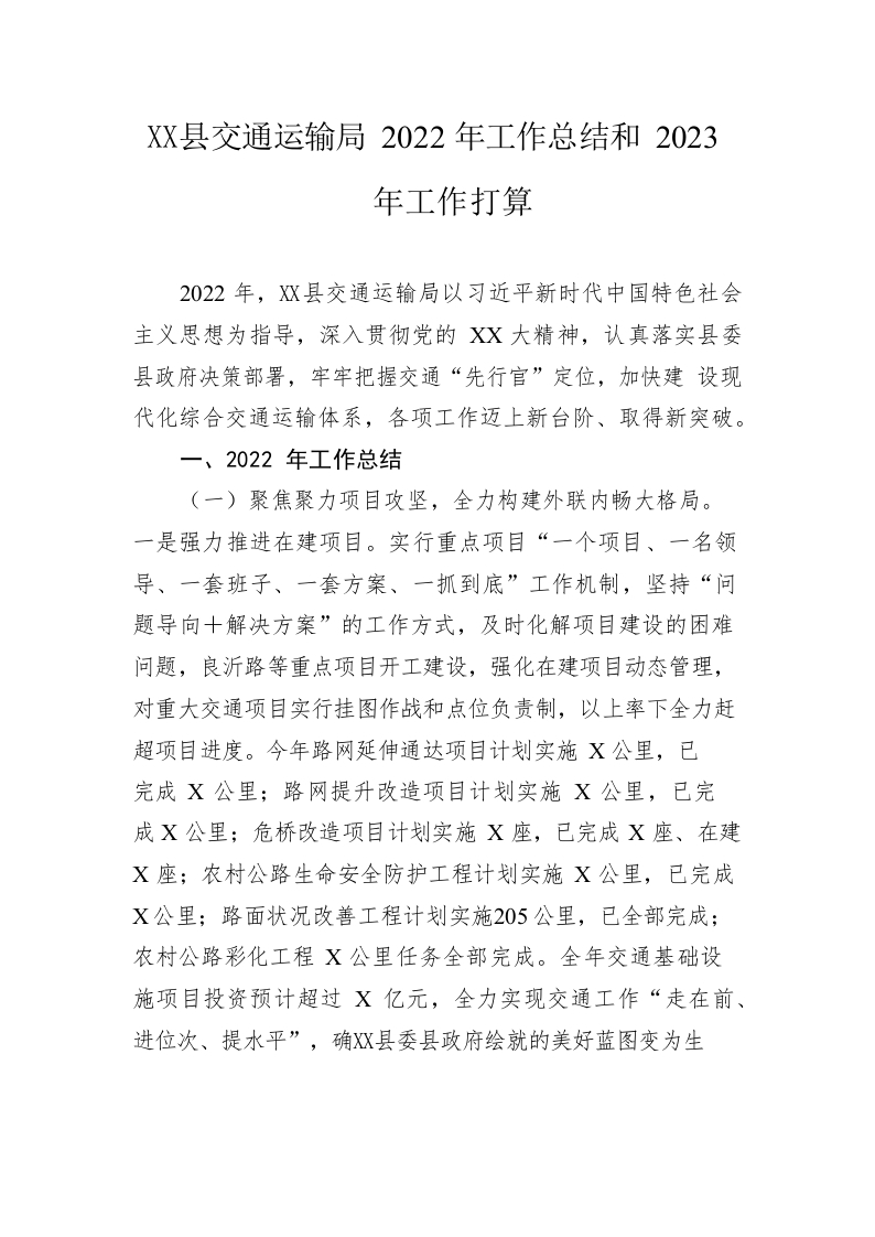 / 县交通运输局2022年工作总结和2023年工作打算