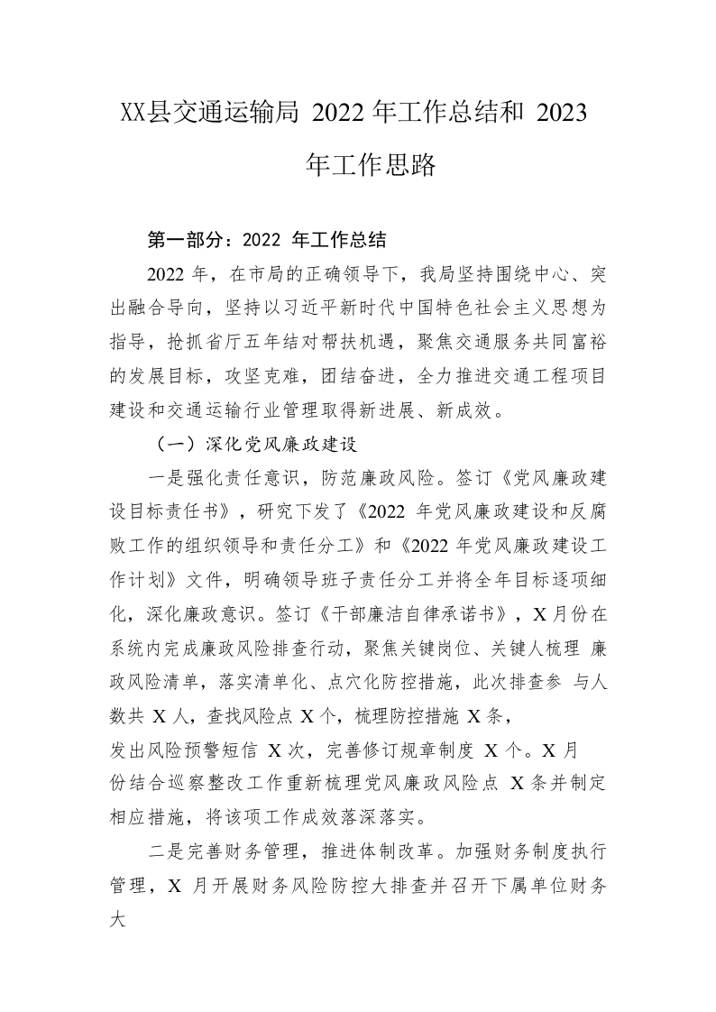 / 县交通运输局2022年工作总结和2023年工作思路