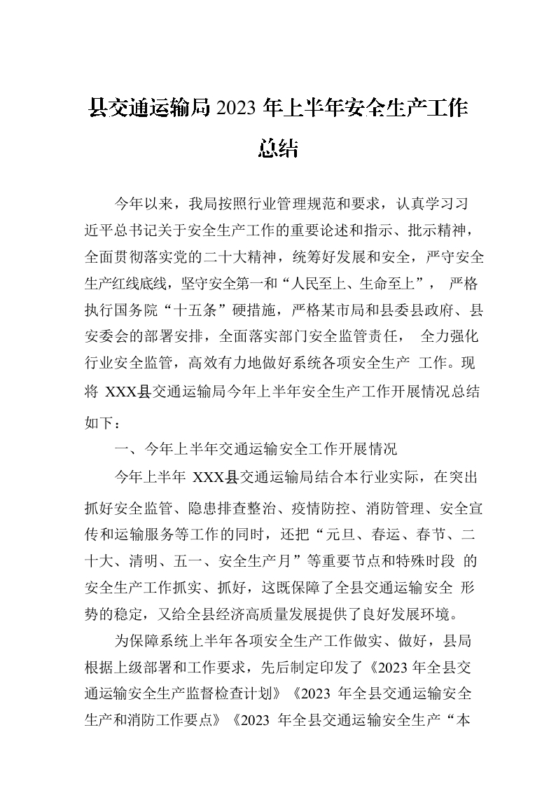 / 县交通运输局2023年上半年安全生产工作总结(20230703)