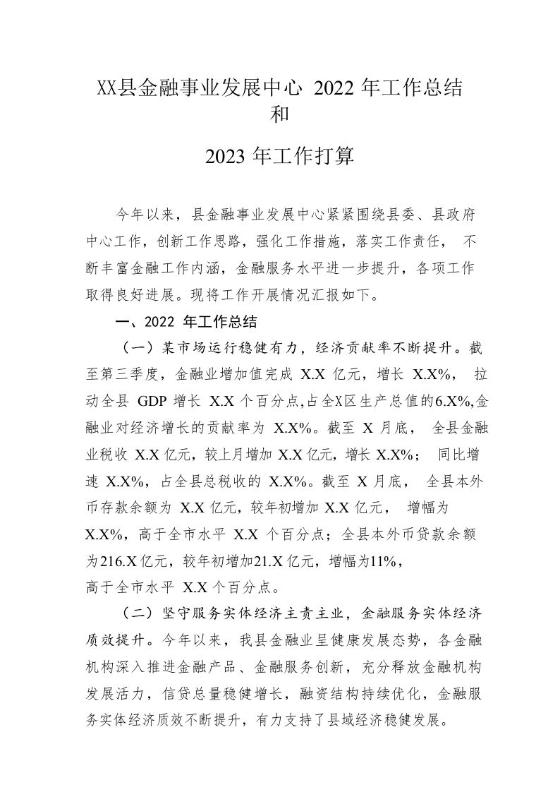 / 县金融事业发展中心2022年工作总结和2023年工作打算