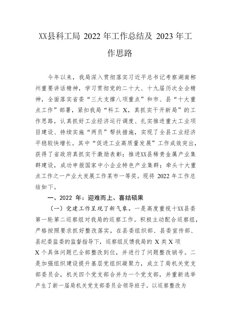 / 县科工局2022年工作总结及2023年工作思路