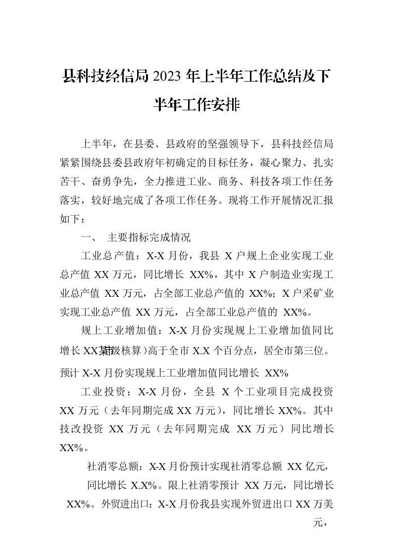 / 县科技经信局2023年上半年工作总结及下半年工作安排(20230710)