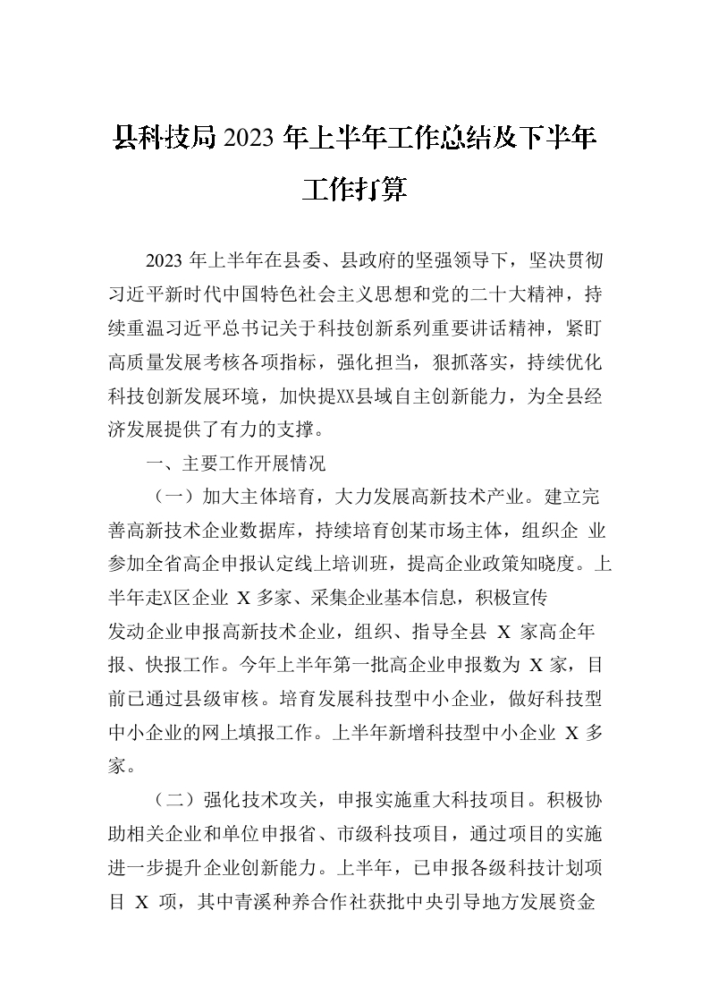 / 县科技局2023年上半年工作总结及下半年工作打算