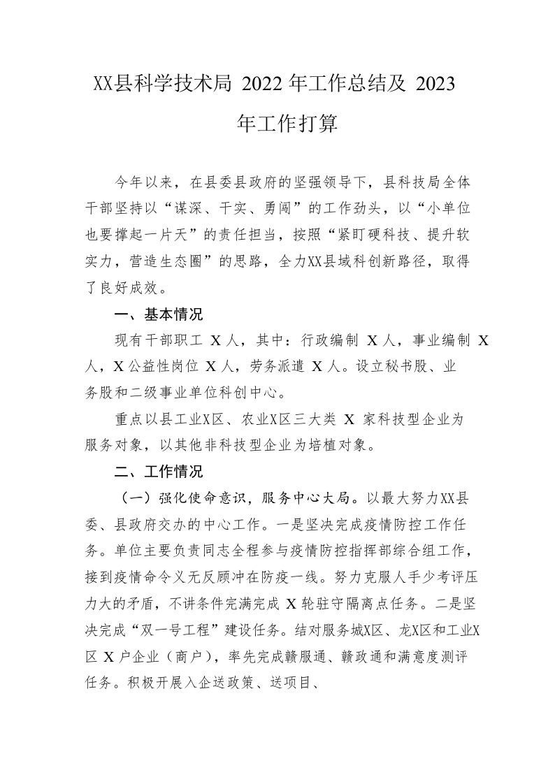 / 县科学技术局2022年工作总结及2023年工作打算
