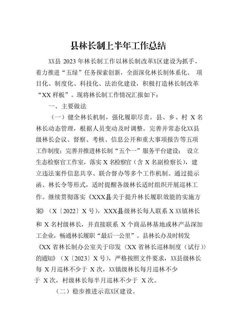 / 县林长制上半年工作总结