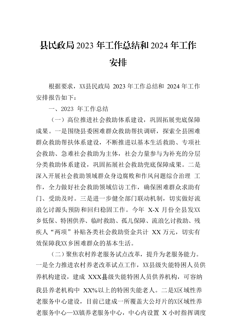 / 县民政局2023年工作总结和2024年工作安排