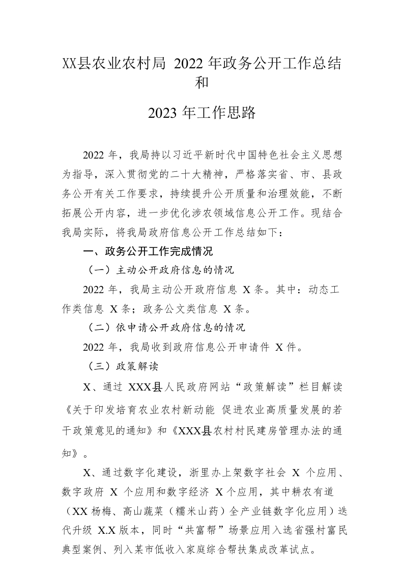 / 县农业农村局2022年政务公开工作总结和2023年工作思路