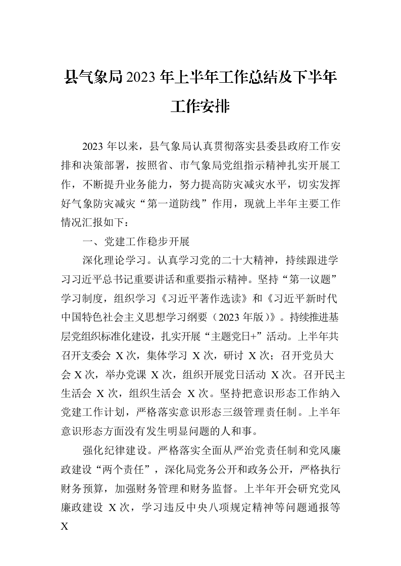 / 县气象局2023年上半年工作总结及下半年工作安排(20230629)
