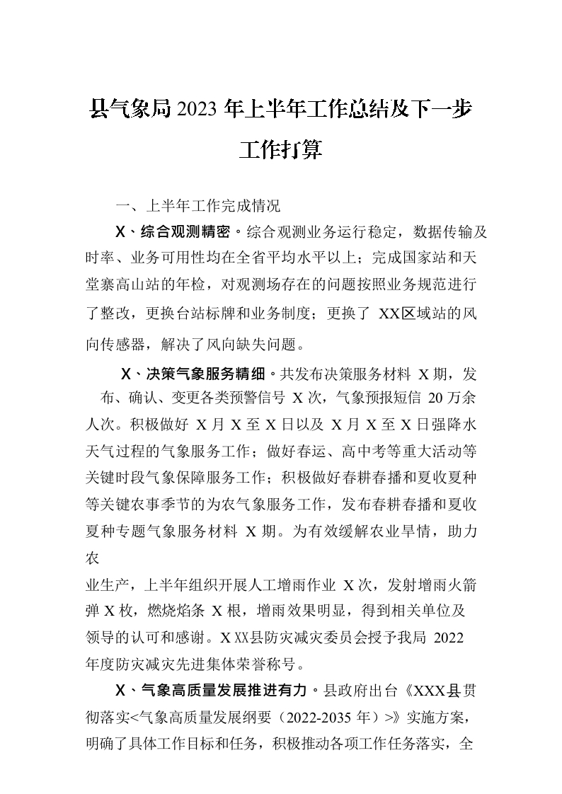 / 县气象局2023年上半年工作总结及下一步工作打算(20230703)
