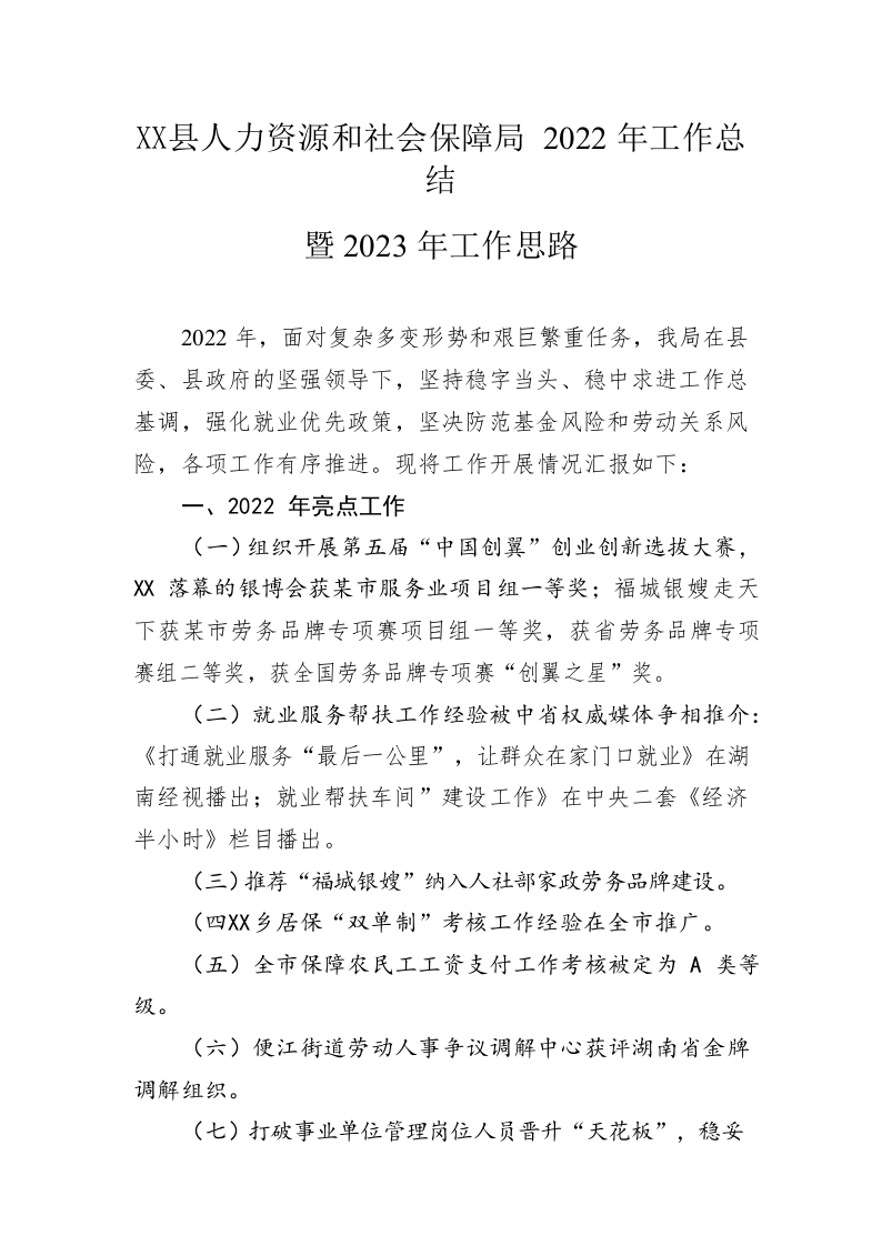 / 县人力资源和社会保障局2022年工作总结暨2023年工作思路
