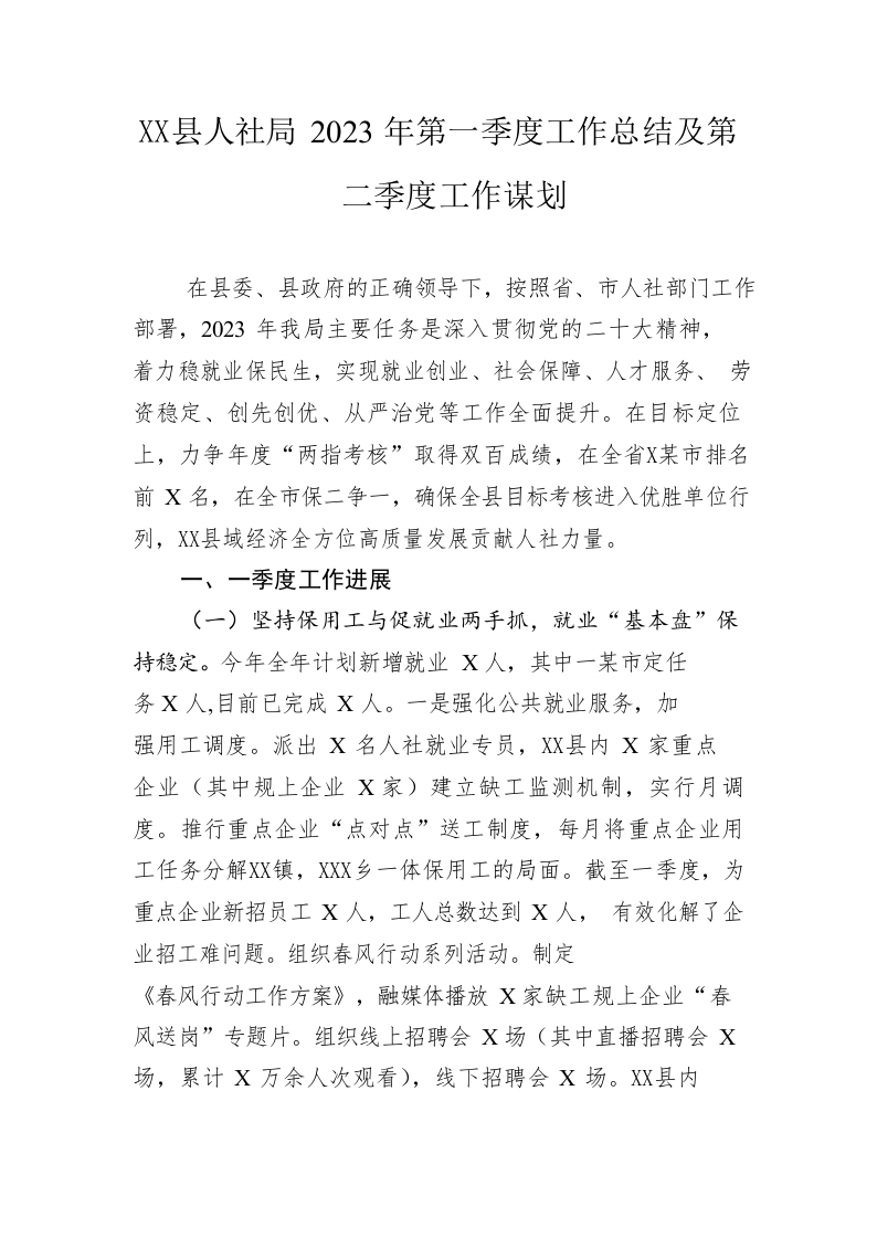 / 县人社局2023年第一季度工作总结及第二季度工作谋划