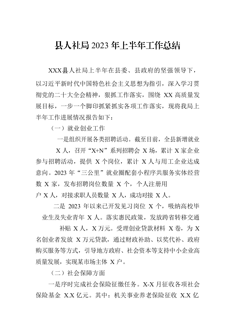 县人社局2023年第一季度工作总结及第二季度工作谋划