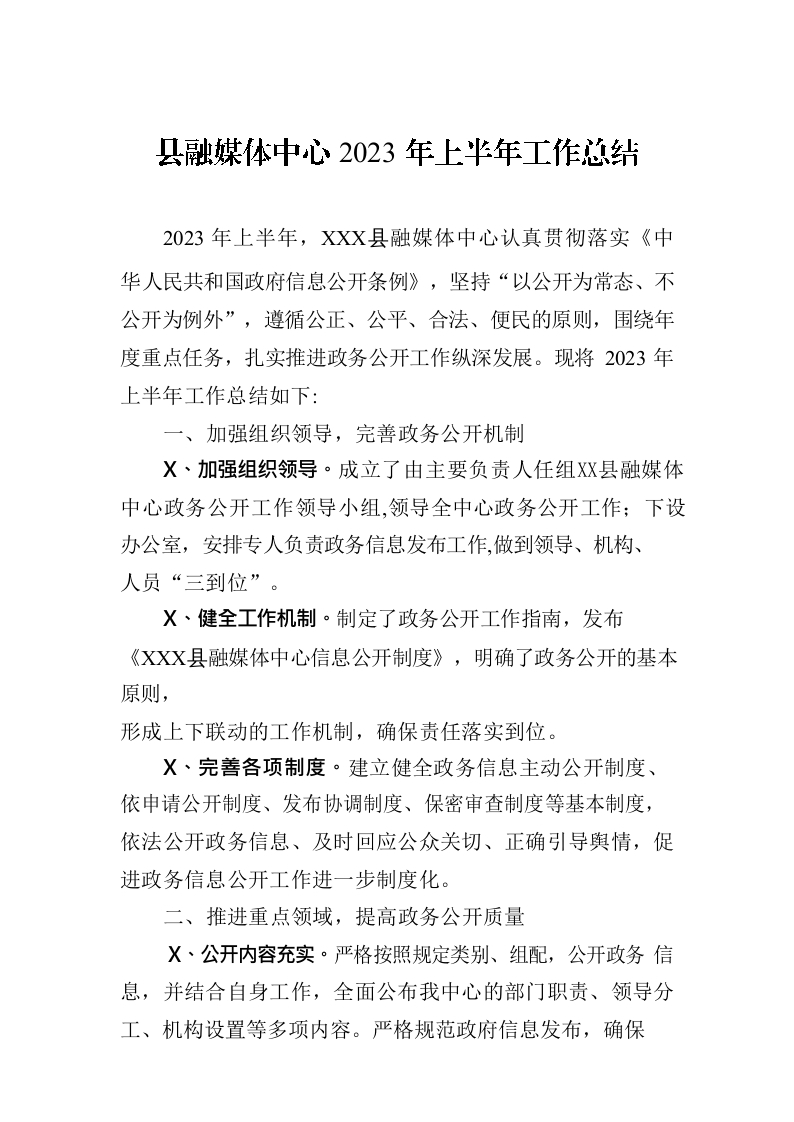 / 县融媒体中心2023年上半年工作总结(20230704)