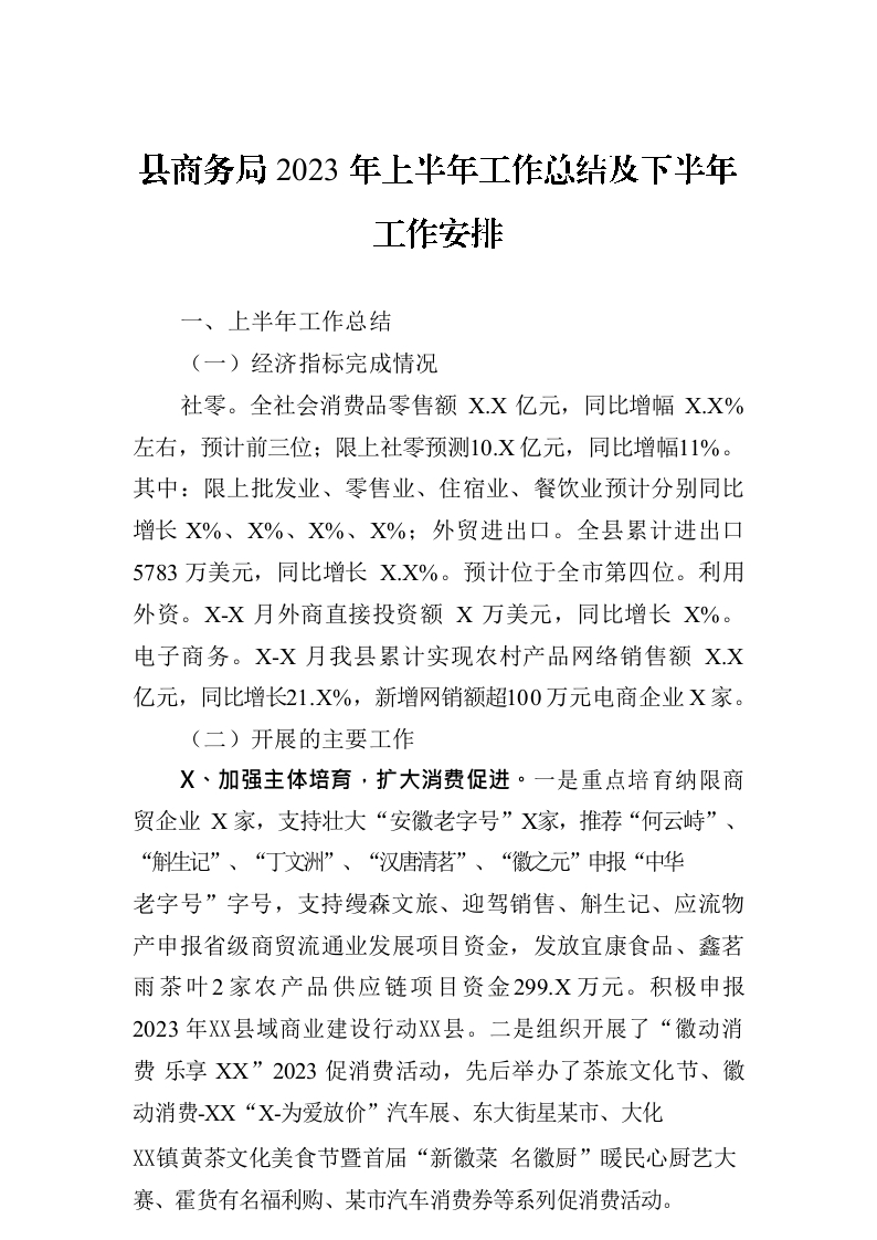 / 县商务局2023年上半年工作总结及下半年工作安排(20230703)