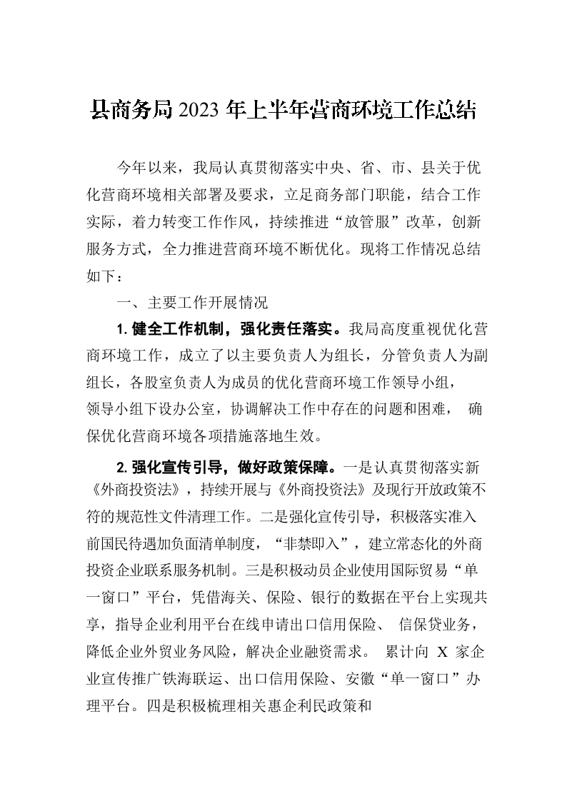 / 县商务局2023年上半年营商环境工作总结(20230614)