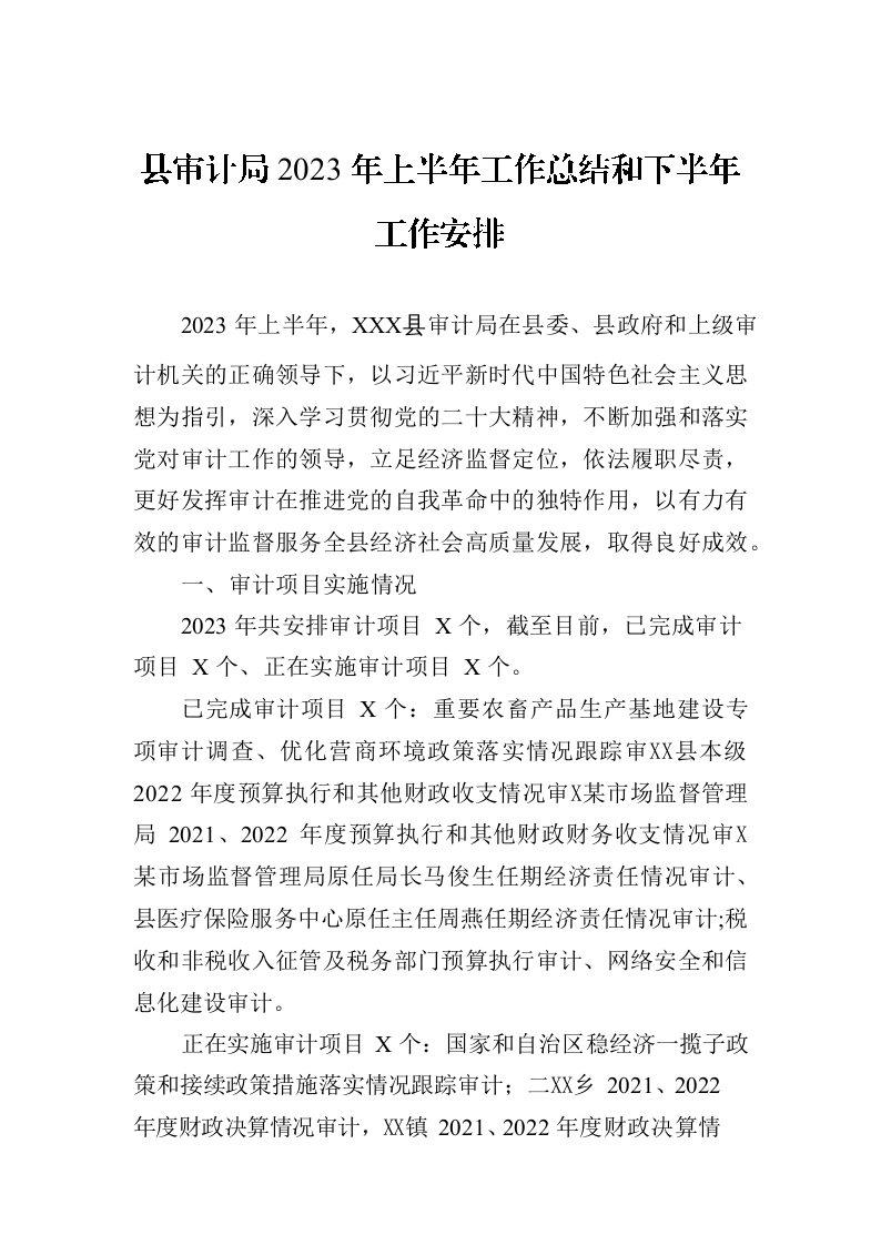 / 县审计局2023年上半年工作总结和下半年工作安排(20230629)