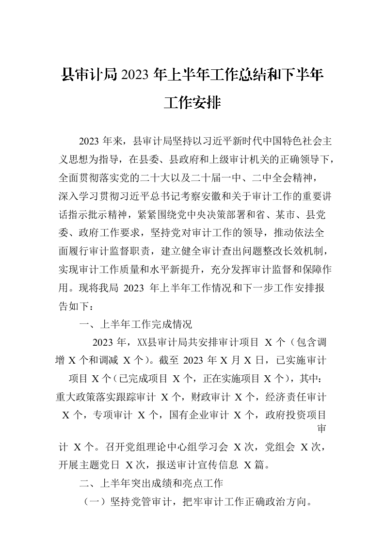 县审计局2023年上半年工作总结和下半年工作安排(20230905)