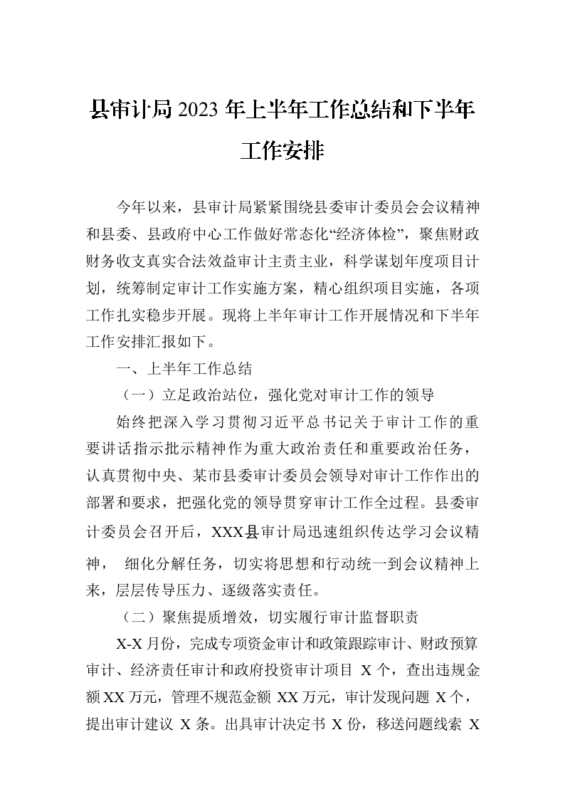 / 县审计局2023年上半年工作总结和下半年工作安排(20230905)