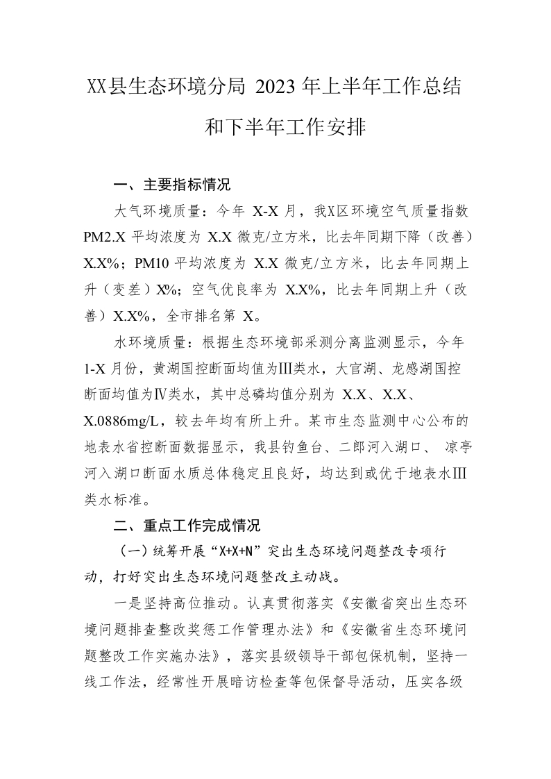 / 县生态环境分局2023年上半年工作总结和下半年工作安排(20230628)