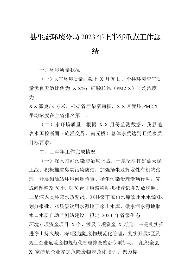 / 县生态环境分局2023年上半年重点工作总结(20230703)