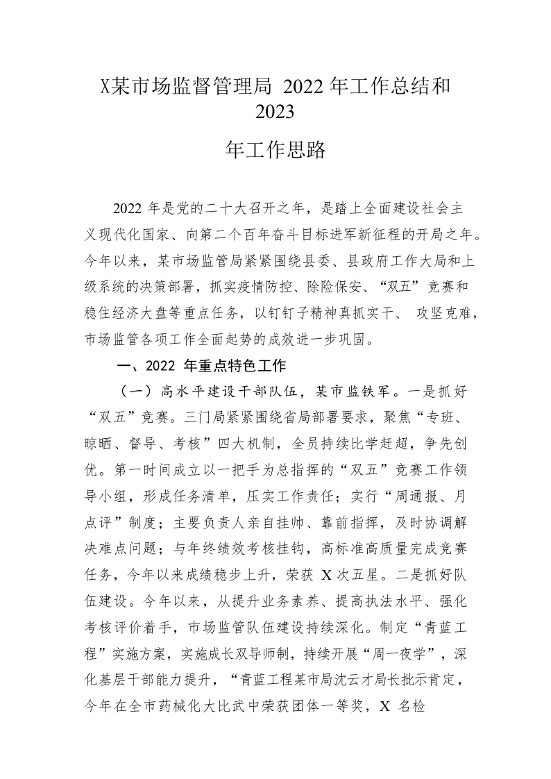 / 县市场监督管理局2022年工作总结和2023年工作思路