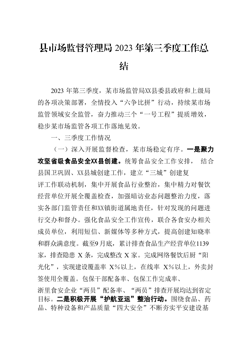 / 县市场监督管理局2023年第三季度工作总结