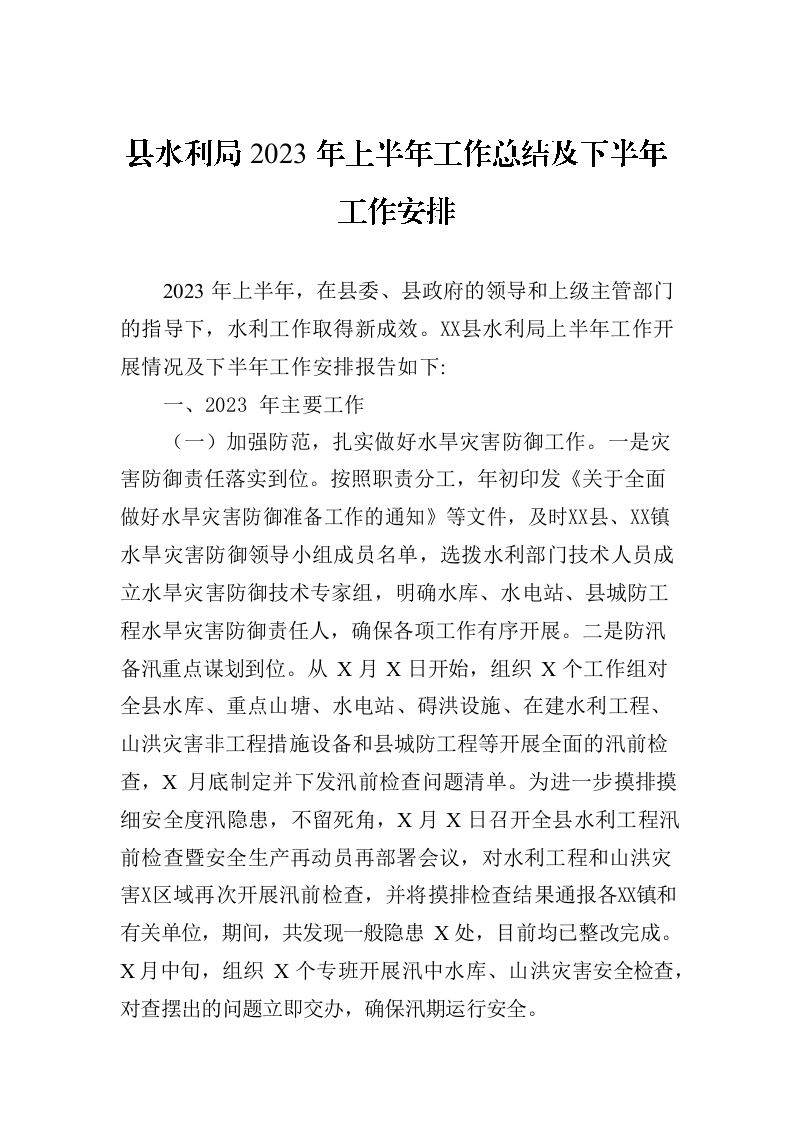 / 县水利局2023年上半年工作总结及下半年工作安排(20230706)