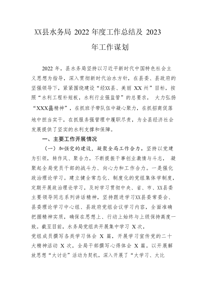 / 县水务局2022年度工作总结及2023年工作谋划