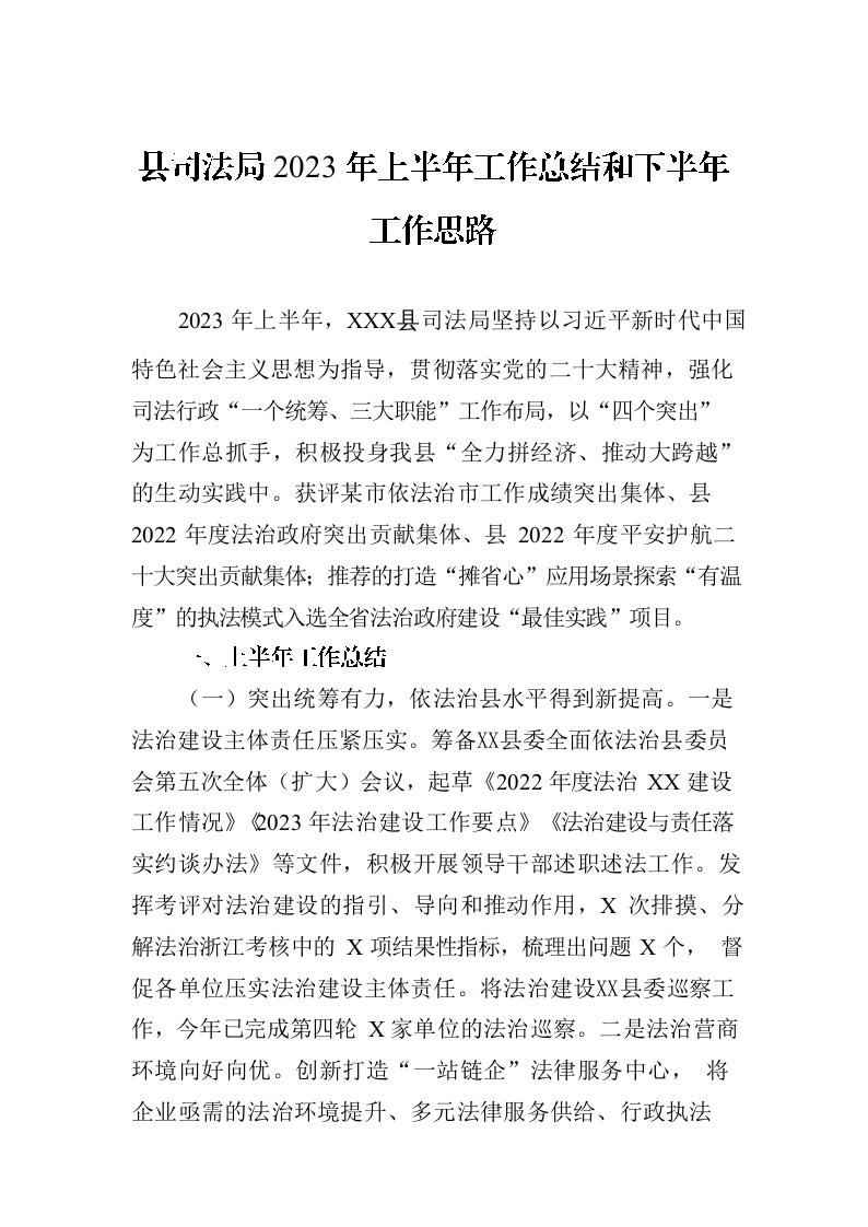 / 县司法局2023年上半年工作总结和下半年工作思路(20230629)