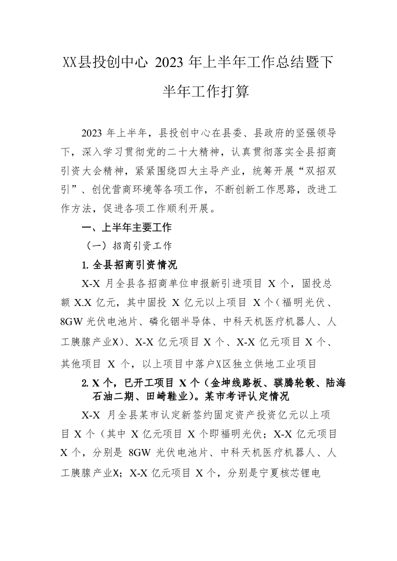 / 县投创中心2023年上半年工作总结暨下半年工作打算(20230626)
