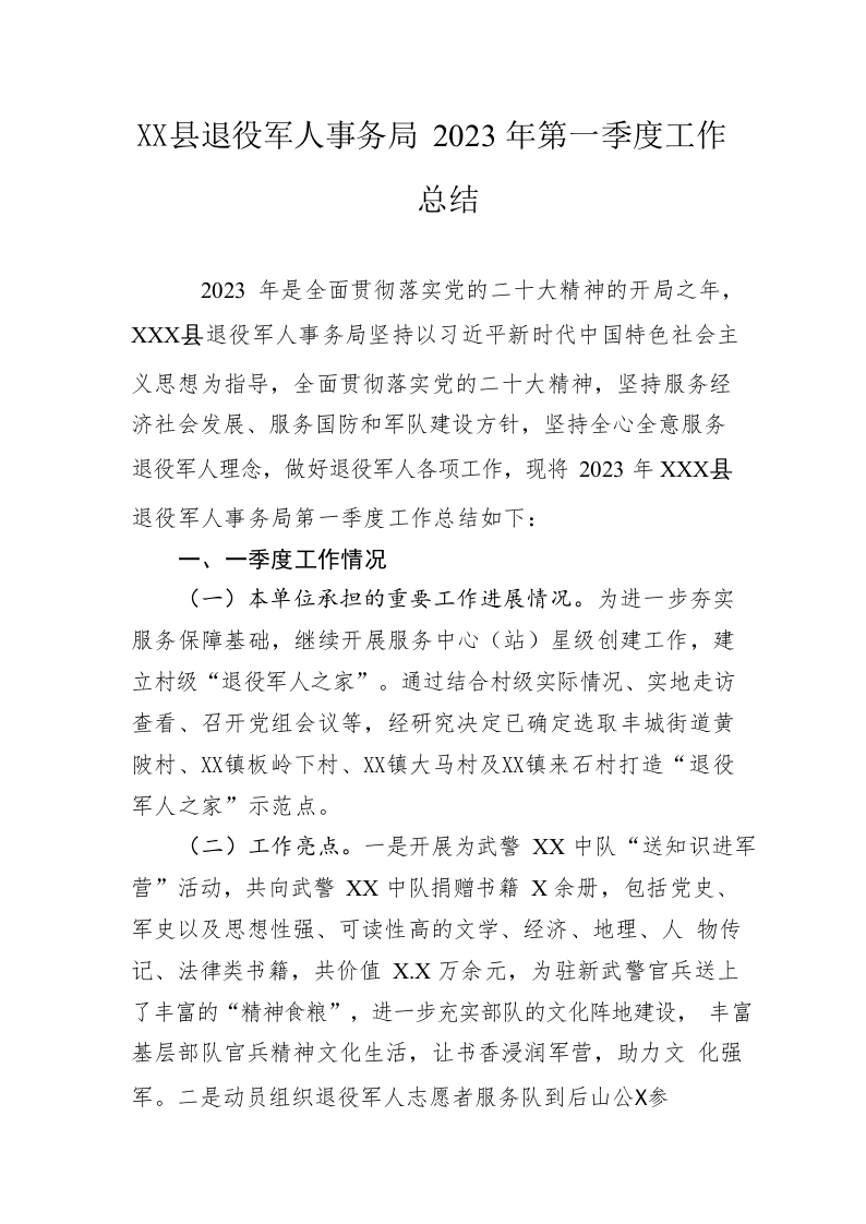 / 县退役军人事务局2023年第一季度工作总结(20230407)