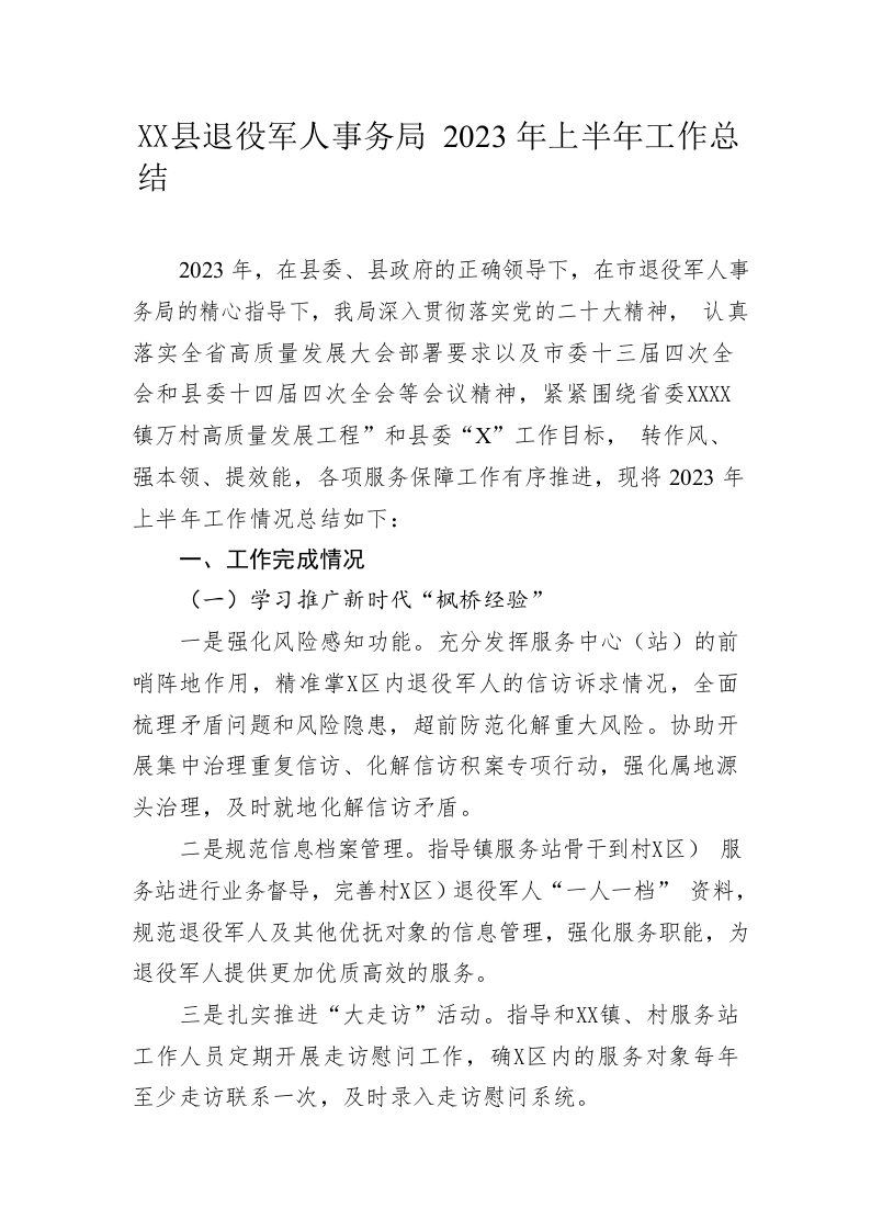 / 县退役军人事务局2023年上半年工作总结(20230625)