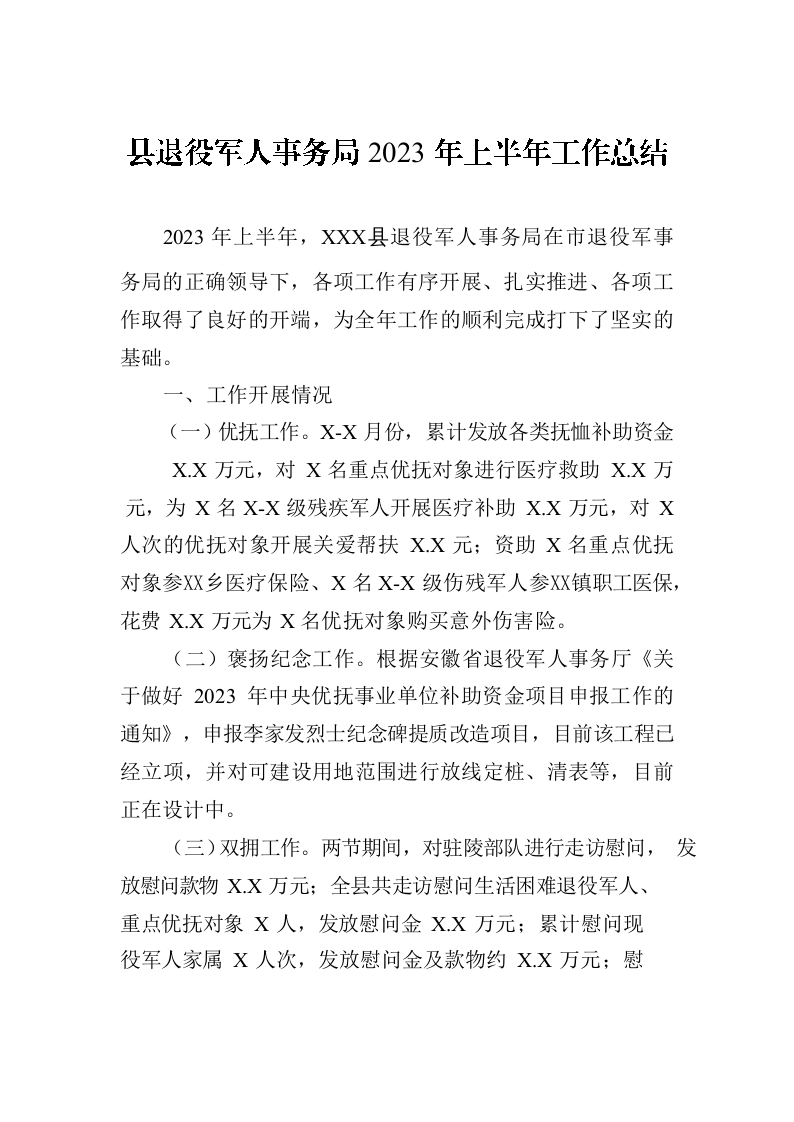 / 县退役军人事务局2023年上半年工作总结(20230629)