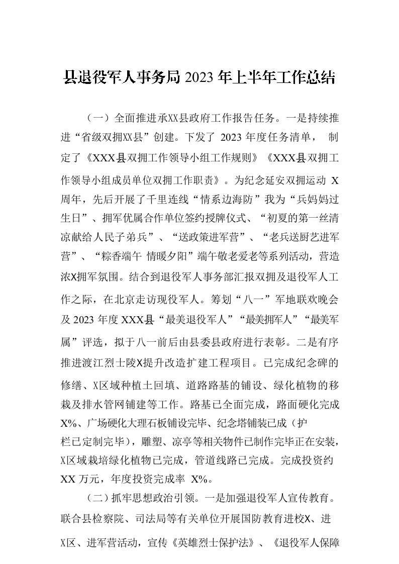 / 县退役军人事务局2023年上半年工作总结(20230704)
