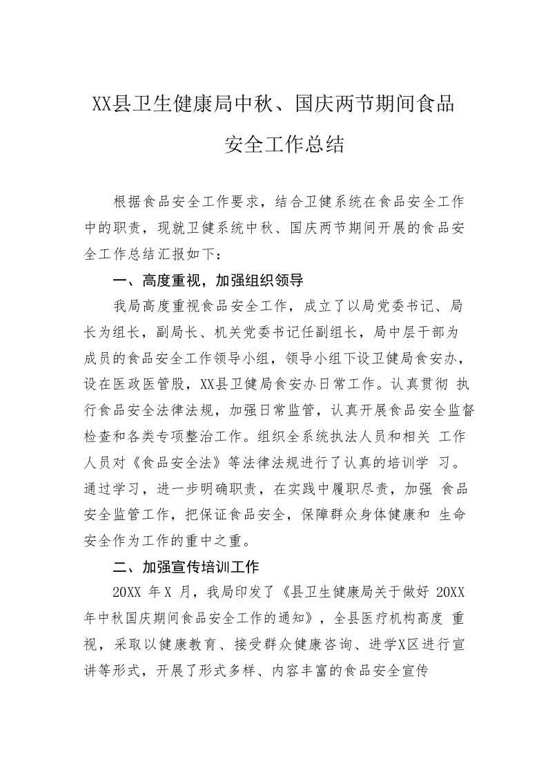 / 县卫生健康局中秋、国庆两节期间食品安全工作总结