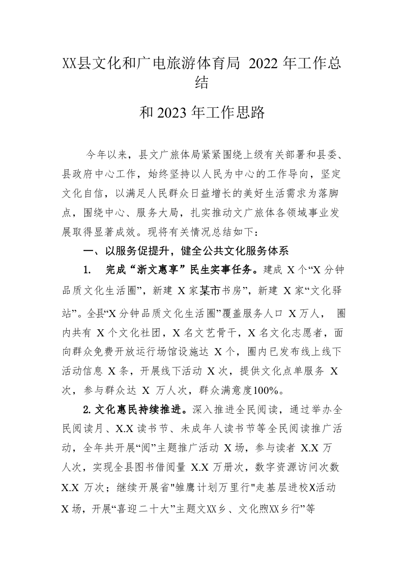 / 县文化和广电旅游体育局2022年工作总结和2023年工作思路