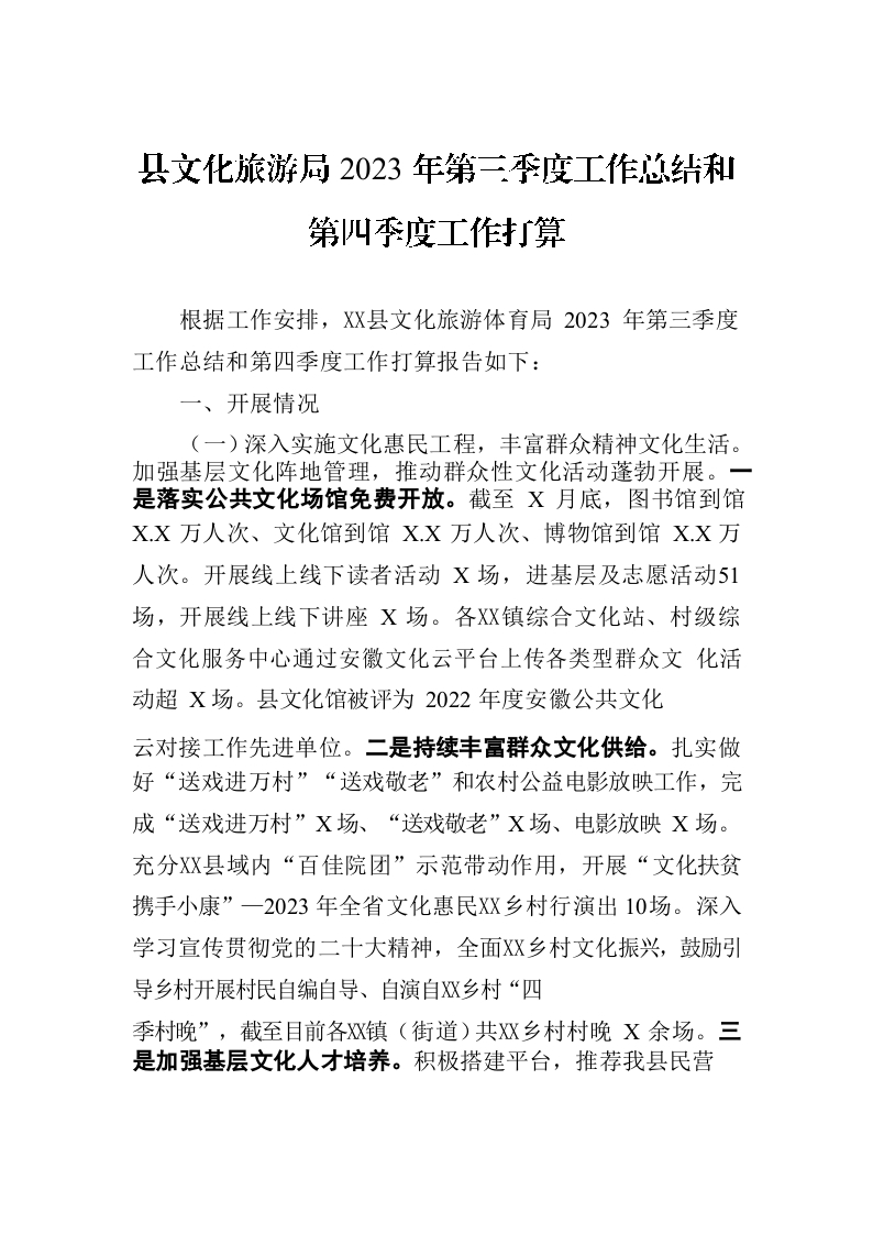 / 县文化旅游局2023年第三季度工作总结和第四季度工作打算