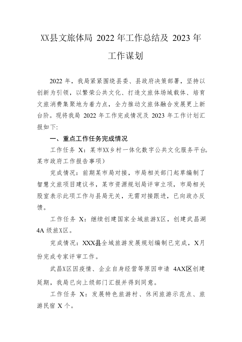 / 县文旅体局2022年工作总结及2023年工作谋划