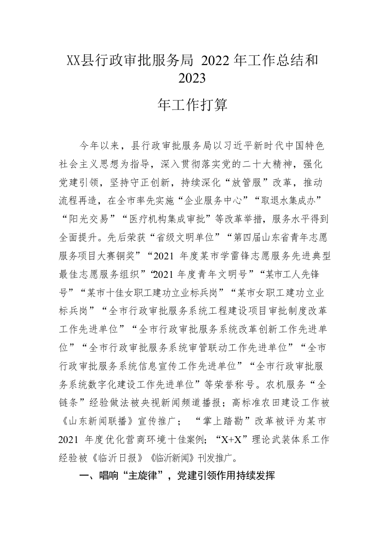 / 县行政审批服务局2022年工作总结和2023年工作打算