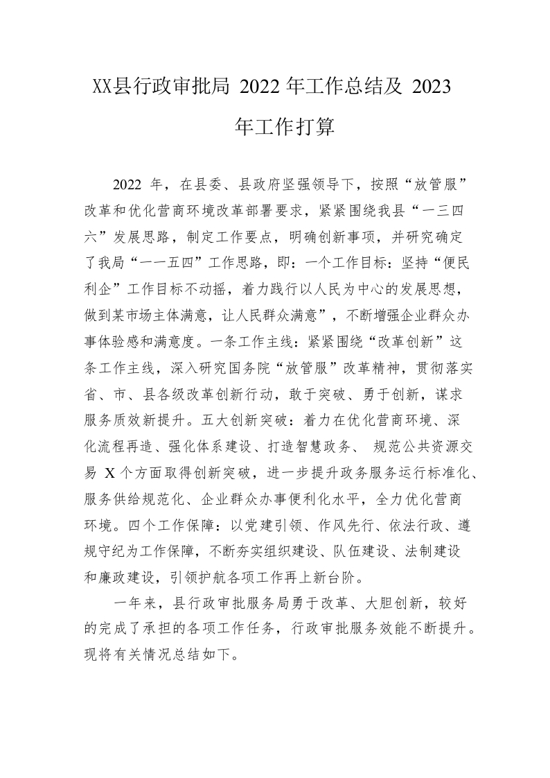 / 县行政审批局2022年工作总结及2023年工作打算