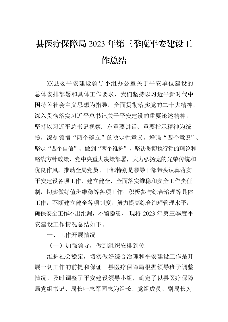 / 县医疗保障局2023年第三季度平安建设工作总结