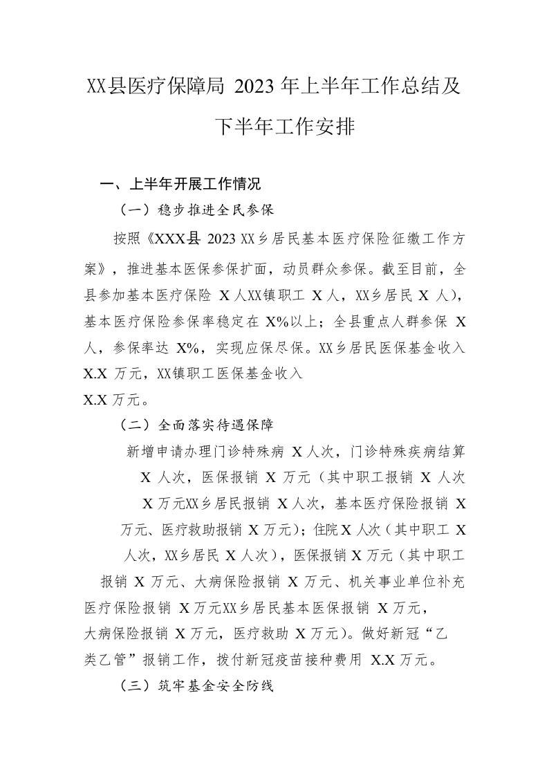 / 县医疗保障局2023年上半年工作总结及下半年工作安排(20230620)