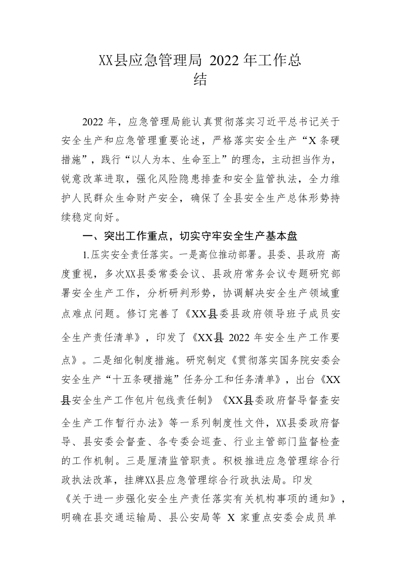 / 县应急管理局2022年工作总结