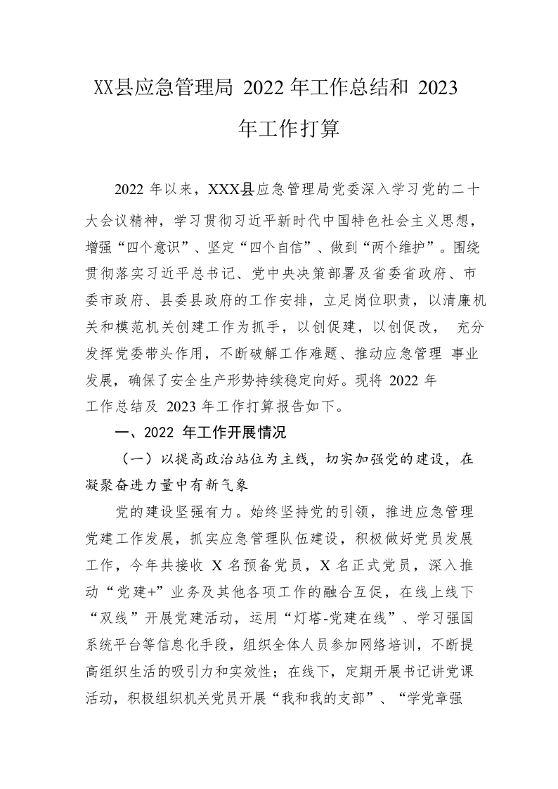/ 县应急管理局2022年工作总结和2023年工作打算