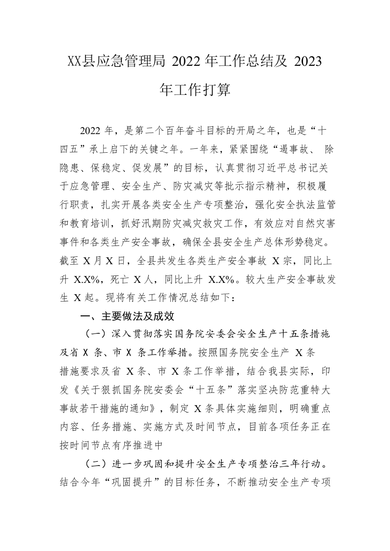 / 县应急管理局2022年工作总结及2023年工作打算