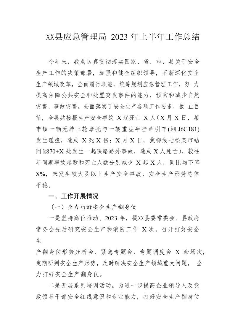 / 县应急管理局2023年上半年工作总结(20230620)
