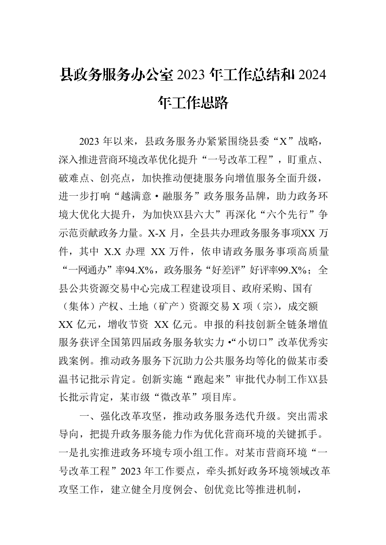 / 县政务服务办公室2023年工作总结和2024年工作思路(20231101)